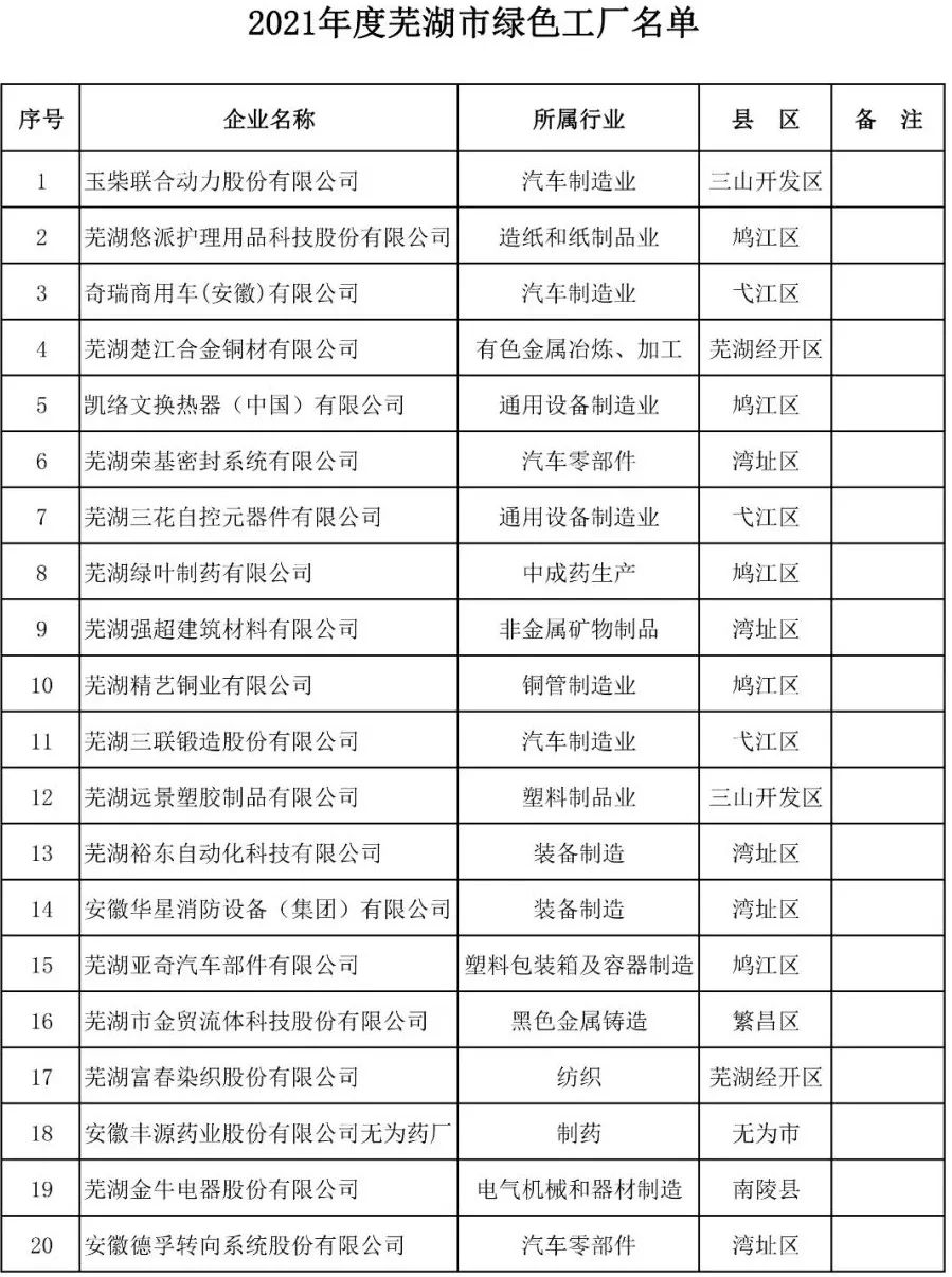 蕪湖市2021年度綠色工廠(chǎng)名單公示【 · 瀏覽 · 】